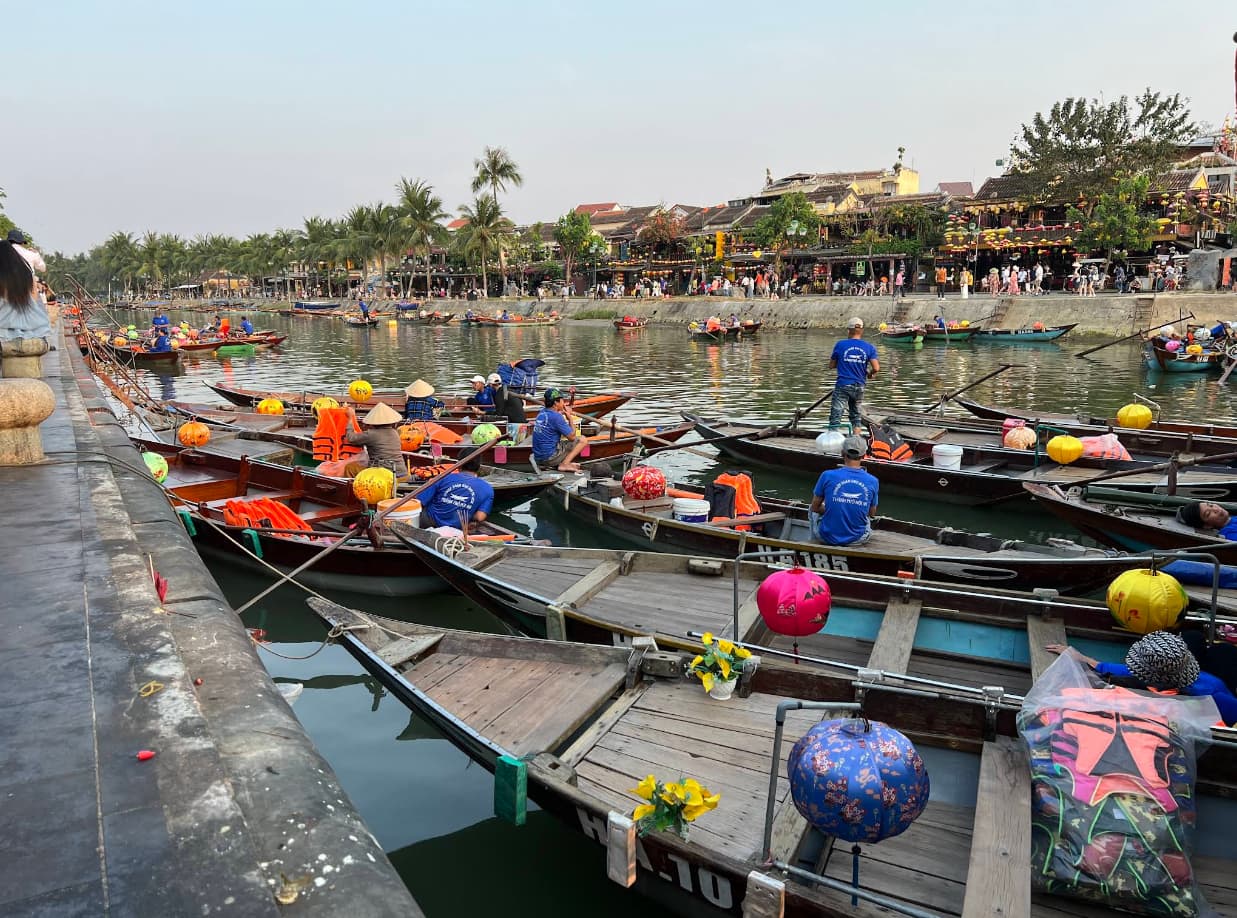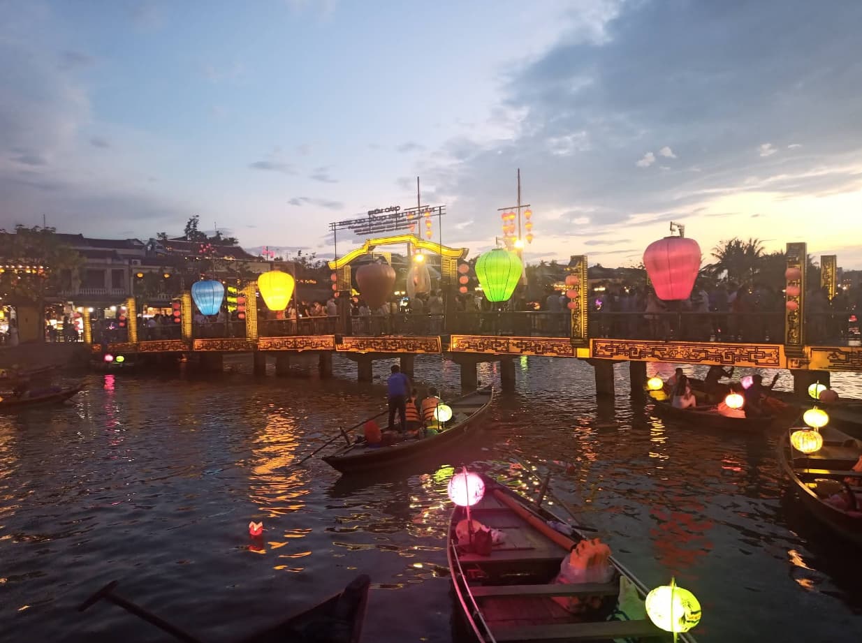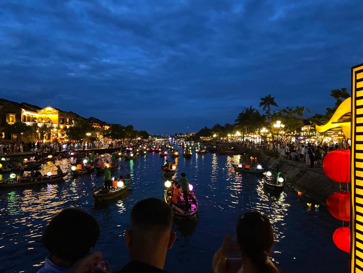 • Gehen Sie in die Höhe: Kommen Sie vor 19 Uhr an. Gehen Sie zur Bach Dang Straße, die am Fluss entlangführt. Bleiben Sie nicht auf der Straße. Finden Sie ein Café oder ein Restaurant mit einem Balkon im zweiten Stock. Es gibt Dutzende. Bestellen Sie ein Getränk oder etwas zu essen. Von dort oben können Sie die gesamte Szene unter Ihnen beobachten – die Boote, die Laternen, den Fluss von Menschen – ohne mittendrin zu sein.