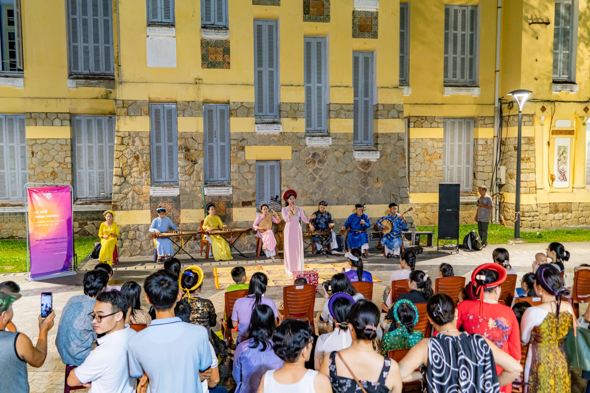 Es ist eine Veranstaltung, die für ein sitzendes Publikum konzipiert ist, für Menschen, die Kunst und Kultur in einem formelleren Rahmen schätzen. Es gibt eine Ao Dai (traditionelle Kleidung) Show, ein Food Festival, das sich auf die berühmt komplexe Küche von Hue konzentriert, und verschiedene Kunstausstellungen.