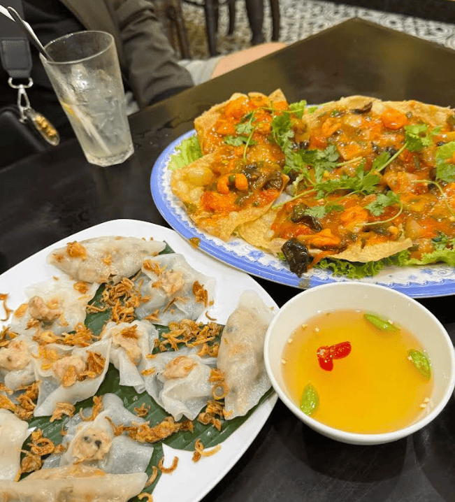 Luego están los Dumplings de Rosa Blanca (Banh Bao Vac). Estos pequeños, delicados y translúcidos dumplings de papel de arroz son una obra de arte culinario. Rellenos de camarones o cerdo picado sazonado, doblados para parecer pequeñas rosas blancas, luego cocidos al vapor y cubiertos con chalotas fritas crujientes, servidos con una salsa ligera y ácida. Aunque los encontrarás en muchos lugares, recomiendo el Restaurante White Rose (533 Hai Ba Trung, Cam Pho, Hoi An), donde un plato cuesta alrededor de 60.000 VND – 90.000 VND (unos 2,50 € – 3,50 €).