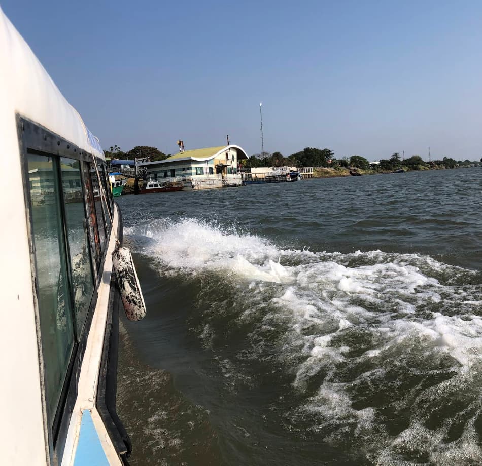 다시 보트에 탔습니다. 말 그대로 물길뿐인 “무인 지대”를 가로질러 3분 정도 운전했습니다.