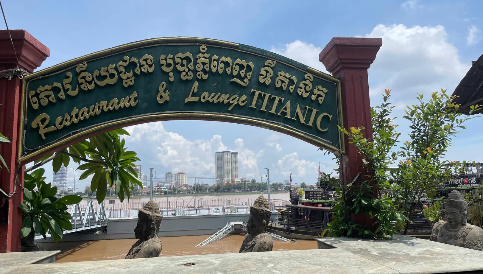 우리는 시소와스 키 관광 터미널(Sisowath Quay Tourist Terminal)에 정박했습니다. 타이타닉 레스토랑(네, 진짜 이름입니다) 바로 근처입니다.