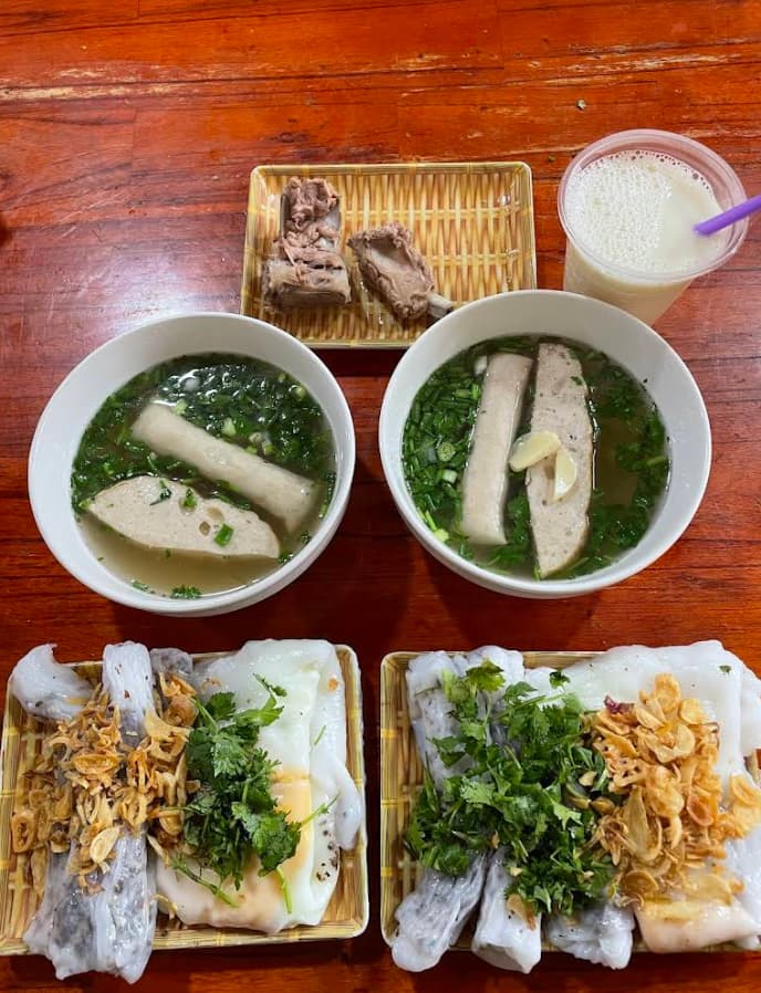 但这里也不全是可怕的炖菜。在同文古街,有一家叫做Banh Cuon Ba Ha的早餐老字号。你得早点去。它不是你在河内吃到的那种摆在盘子里的精致小卷粉。