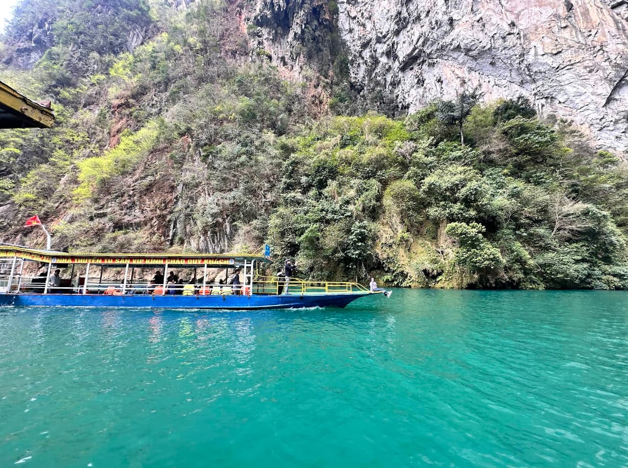 在谷底,你花大约35元人民币买一张船票。漂浮在那翠绿色的水面上,仰望峡谷峭壁的宏伟……一切都变得不同了。